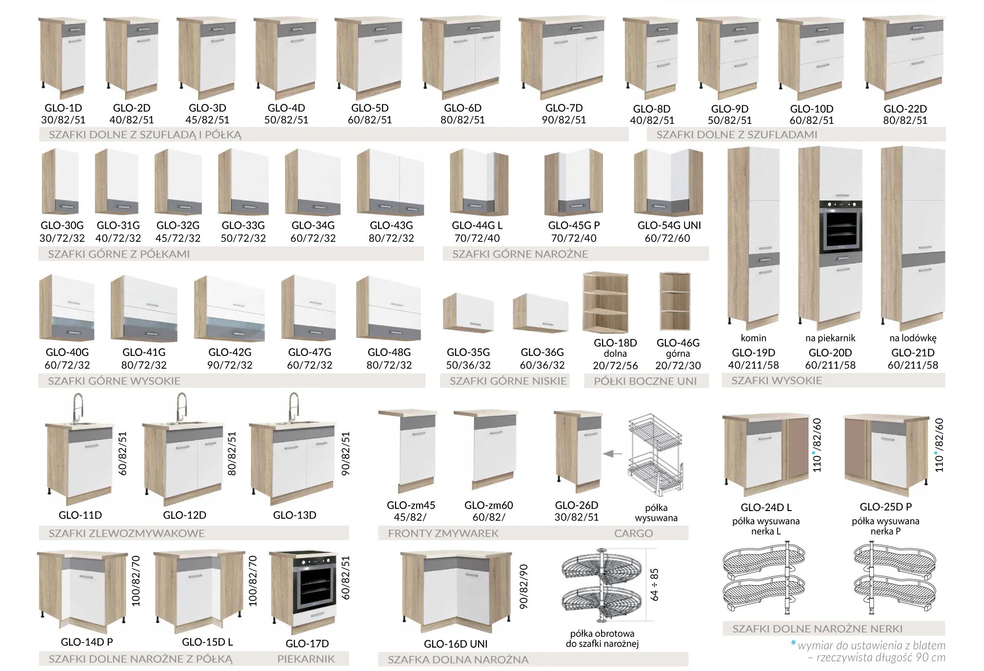 Rozměry: š. 90 cm / v. 82 cm / hl. 51 cm - výška spodní skříňky je bez pracovní desky.