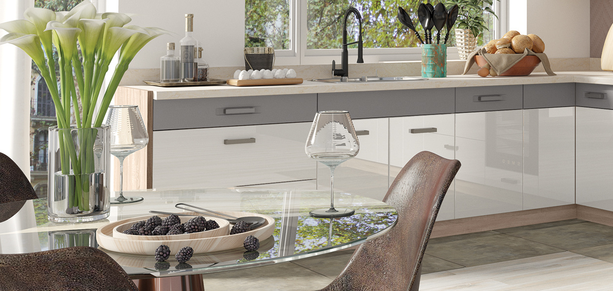 Spodní kuchyňské skříňky se dodávají bez soklu a bez pracovní desky, které si můžete vybrat z naší nabídky.