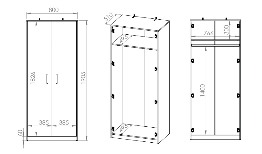FINI 01 šatní skříň - dvoudveřová s šatní tyčí