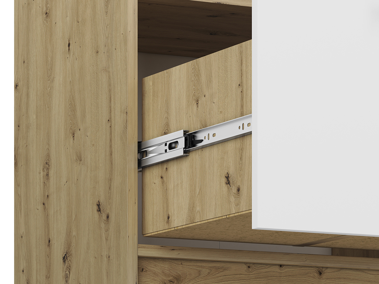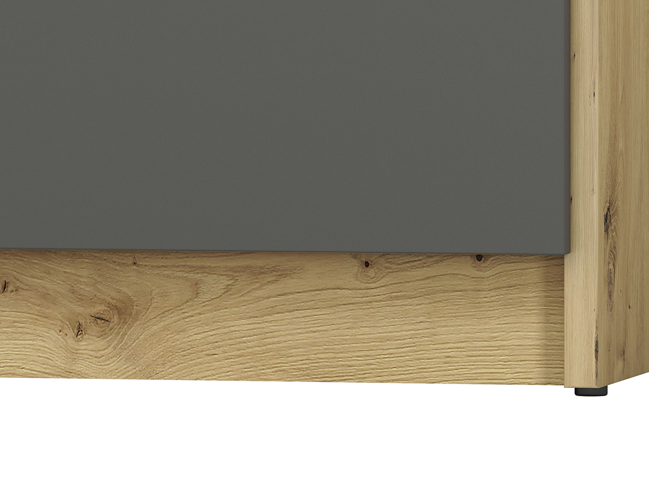 Systémový studentský a dětský nábytek FINI je složen z originálních, jednoduchých tvarů v módních dekorech. Sektor je vyroben z kvalitního lamina. Korpus v dekoru dub artisan je doplněn bílou a antracitem na dvířkách a čelech šuplíků. Barevné ladění čelních ploch a korpusu vytváří mladistvý efekt a eleganci. Kontrastní černé úchytky jsou tečkou na jedinečnosti nábytku FINI.