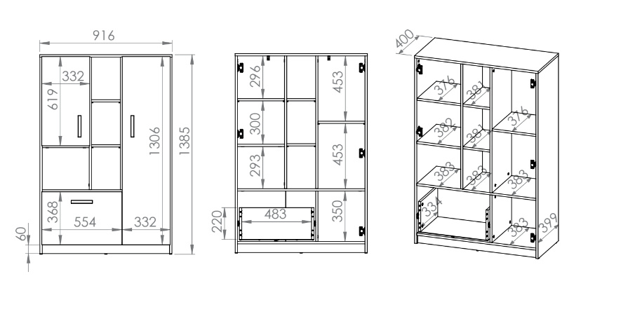 Rozměr: v. 139 cm / š. 92 cm / hl. 42 cm