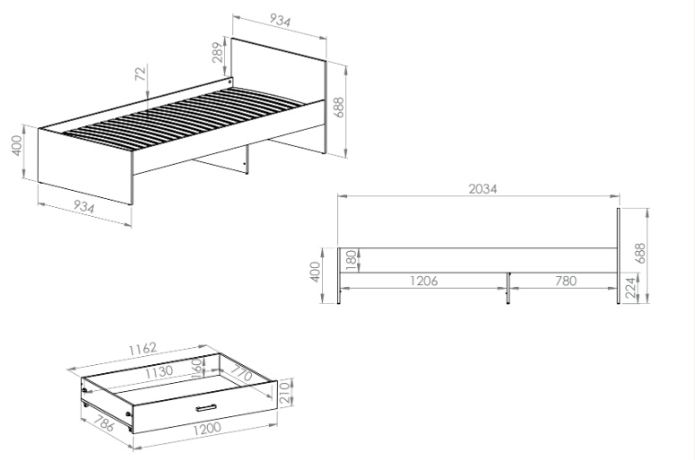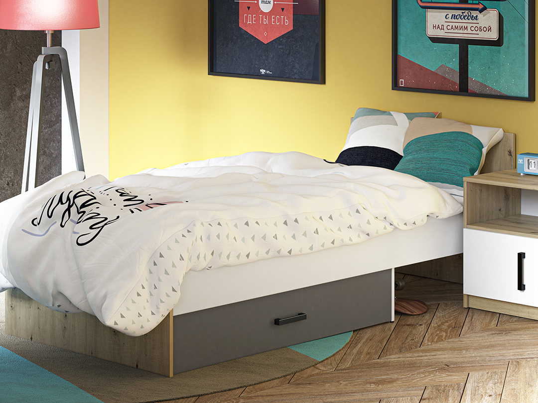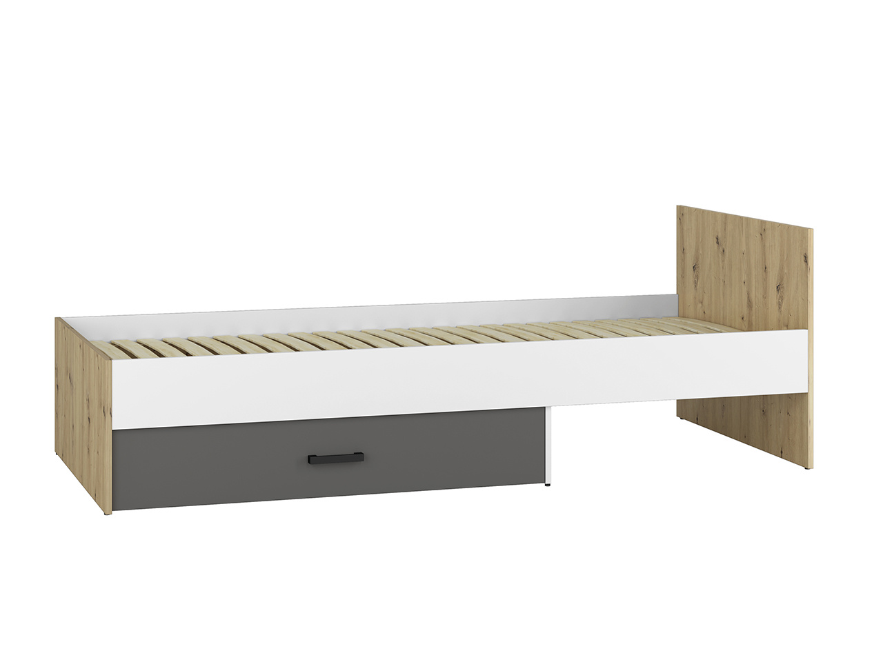 FINI 09 postel 90 x 200 cm - s pevným roštem a úložným prostorem - šuplíkem, bez matrace 90 x 200 cm, kterou můžete doobjednat z naší nabídky.