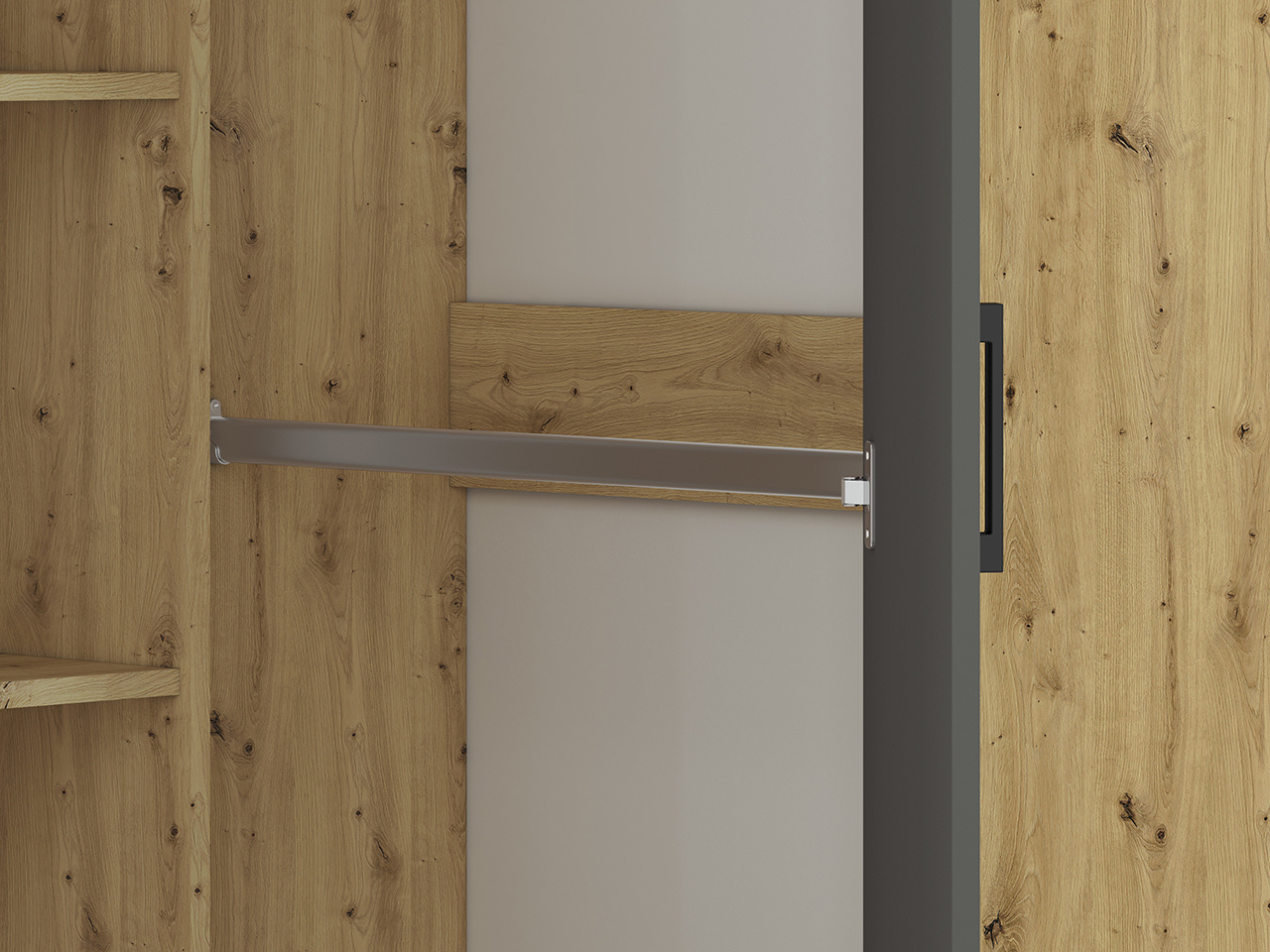 Systémový studentský a dětský nábytek FINI je složen z originálních, jednoduchých tvarů v módních dekorech. Sektor je vyroben z kvalitního lamina. Korpus v dekoru dub artisan je doplněn bílou a antracitem na dvířkách a čelech šuplíků. Barevné ladění čelních ploch a korpusu vytváří mladistvý efekt a eleganci. Kontrastní černé úchytky jsou tečkou na jedinečnosti nábytku FINI.