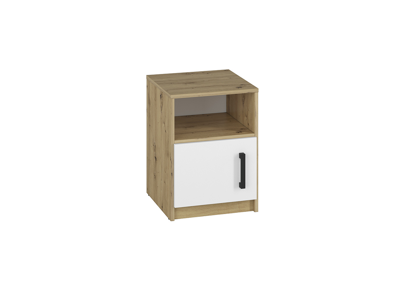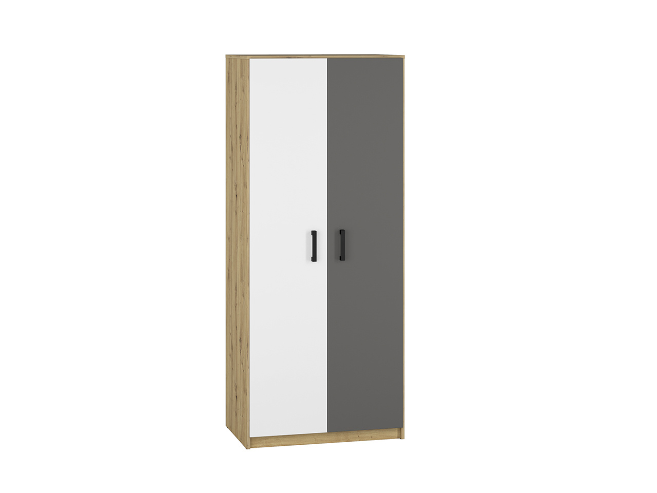 Systémový studentský a dětský nábytek FINI je složen z originálních, jednoduchých tvarů v módních dekorech. Sektor je vyroben z kvalitního lamina. Korpus v dekoru dub artisan je doplněn bílou a antracitem na dvířkách a čelech šuplíků. Barevné ladění čelních ploch a korpusu vytváří mladistvý efekt a eleganci. Kontrastní černé úchytky jsou tečkou na jedinečnosti nábytku FINI.