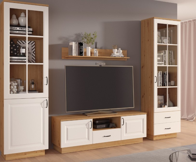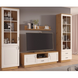 Obývací pokoj z nábytkového programu FLAMENCO se stane místem, kde si dokonale vychutnáte chvíle odpočinku v příjemném prostředí. Tato jedinečná kombinace dubu artisan/ bílá dodá interiéru lehkost a svěžest. Eleganci dodají sektorovému nábytku FLAMENCO kovové úchyty. Sektor FLAMENCO se skládá z 11 prvků, ze kterých si můžete vytvořit jedinečný vzhled jídelny nebo obývacího pokoje. Nábytek FLAMENCO je vyrobena z kvalitní MDF.
