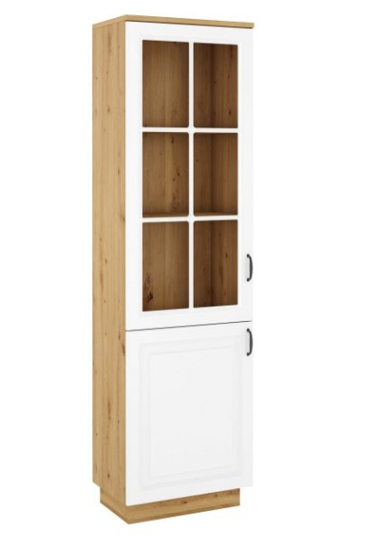 Vitrína 1W1D - dvoudvéřová, horní dvířka prosklená, uvnitř police