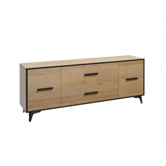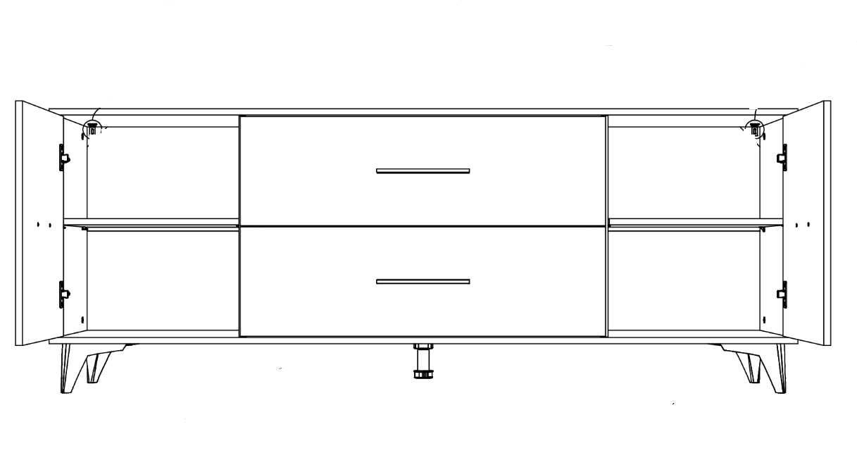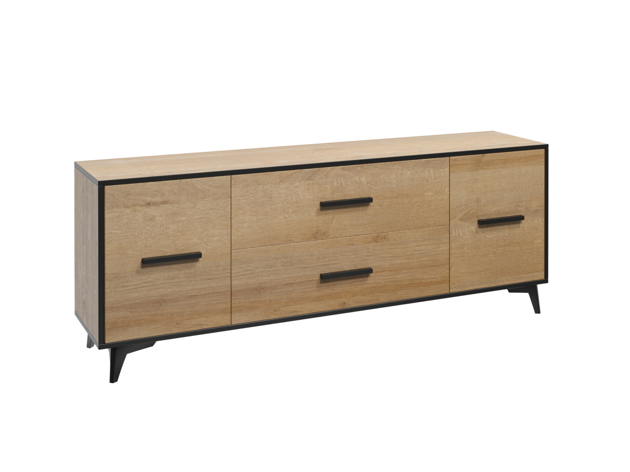 Televizní stolek RTV2D2S ze systému FRIDA - po stranách plná dvířka a police, uprostřed dva šuplíky