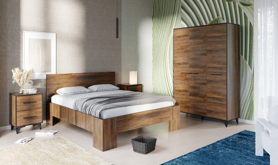 Moderní nábytek nemusí znamenat strohý a minimalistický. Systémovým nábytkem FRIDA zařídíte obývací pokoj i ložnici v přírodních zemitých barvách. K sestavení vlastního interiéru budete mít 15 prvků. Nábytek je vyroben z kvalitního lamina v hřejivém barevném provedení Walnut s černým ohraněním a černými úchyty. Nábytek je postaven na nožičky v černé barvě, které jsou 12 cm vysoké