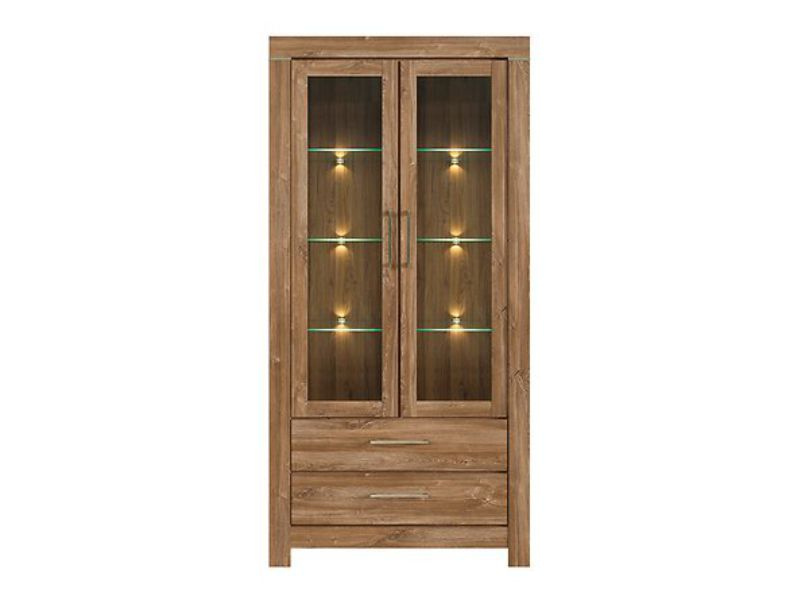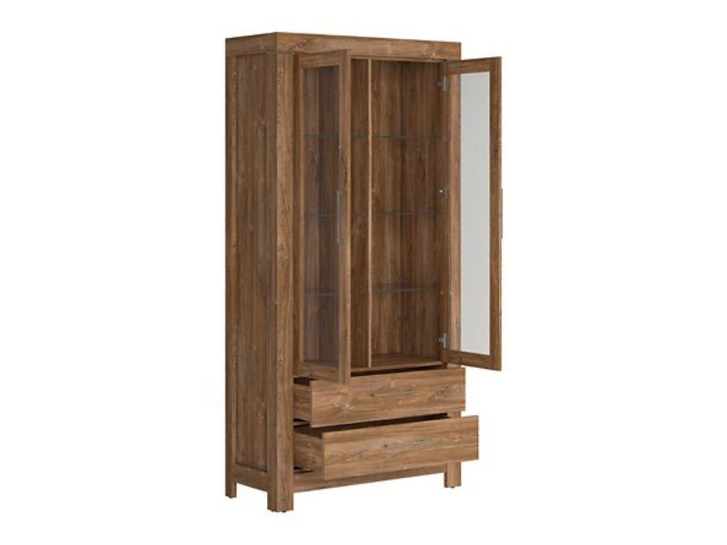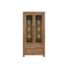 Vitrína REG2W2S/20/10 ze systému GENT - kombinovaná dvoudvířková vitrína s dvěma šuplíky a policemi