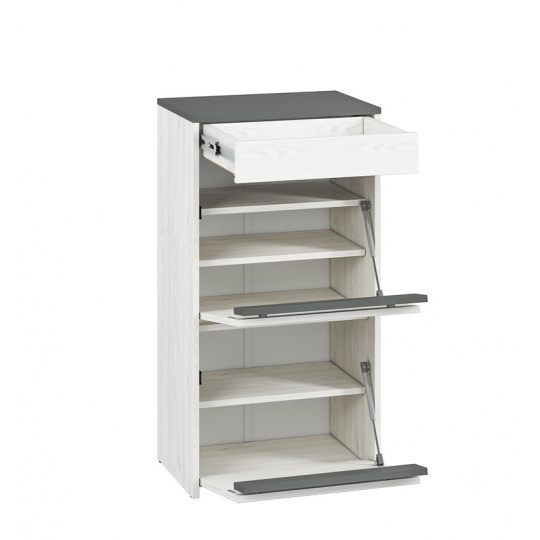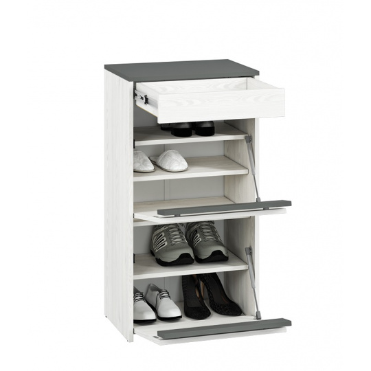 Botník - dvou dvířkový s policemi a výklopnými dvířky, nahoře šuplík na drobnosti