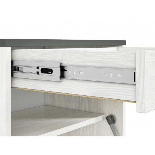 čelní plochy - kvalitní lamino, dekor bílá borovice, antracitové designové detaily