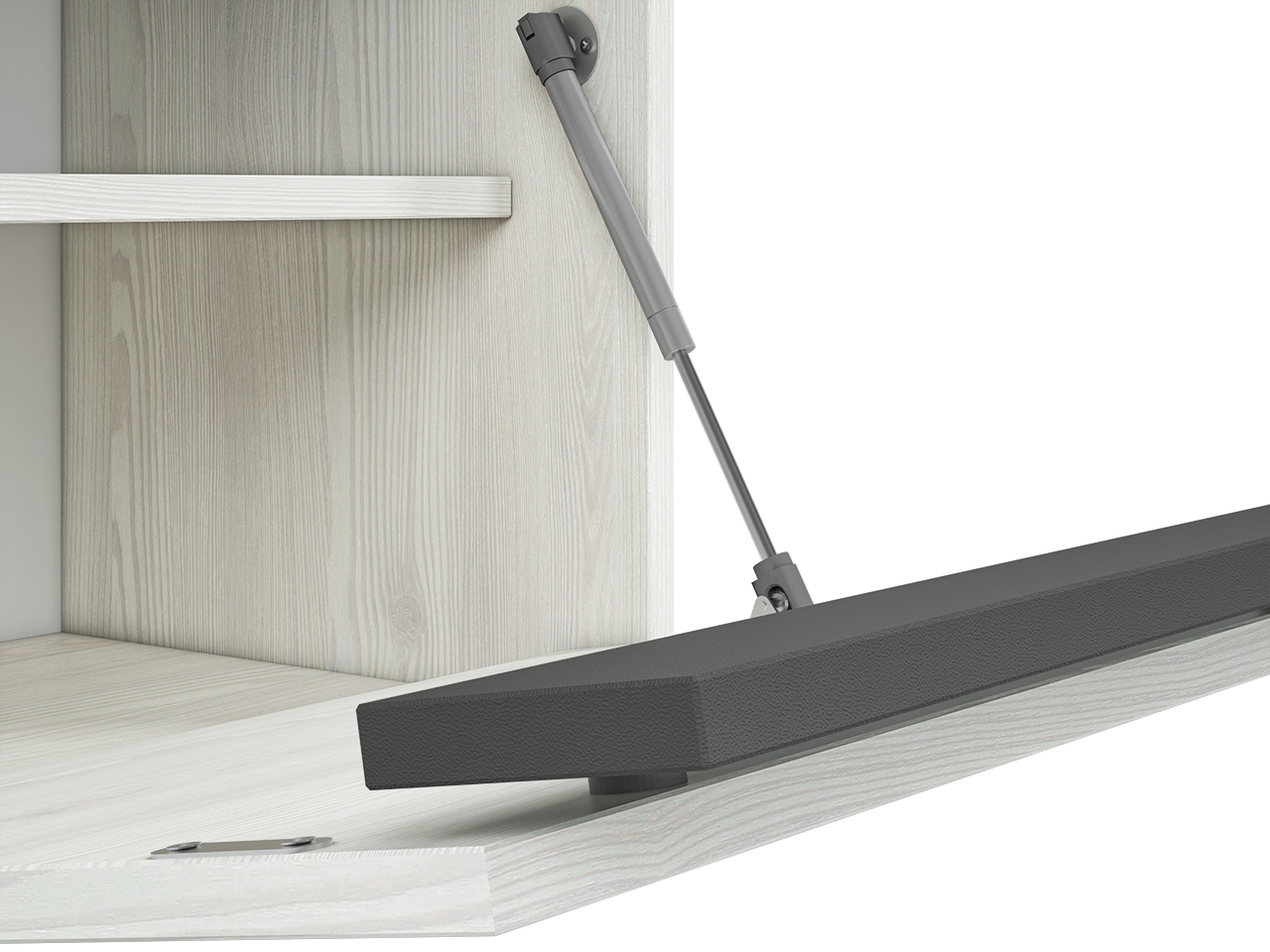čelní plochy - kvalitní lamino, dekor bílá borovice, antracitové designové detaily