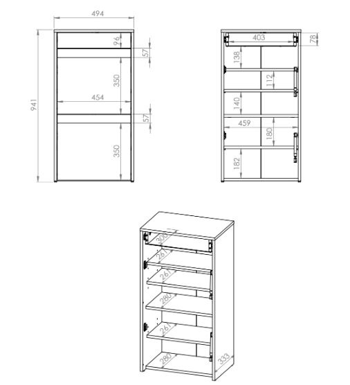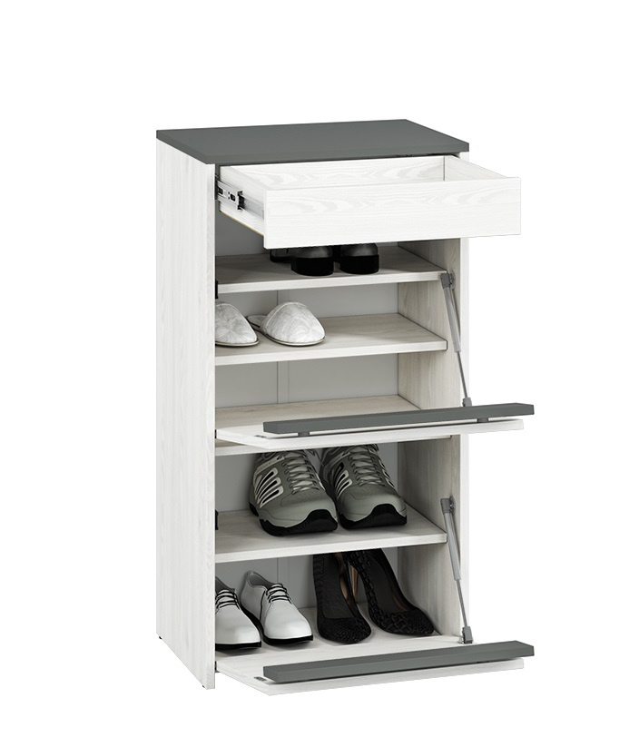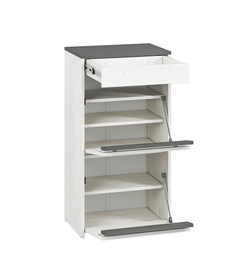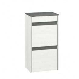 Botník - dvou dvířkový s policemi a výklopnými dvířky, nahoře šuplík na drobnosti