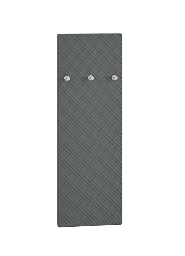 Věšákový panel - čalouněný šedou látkou s efektním prošitím a šedými věšáky