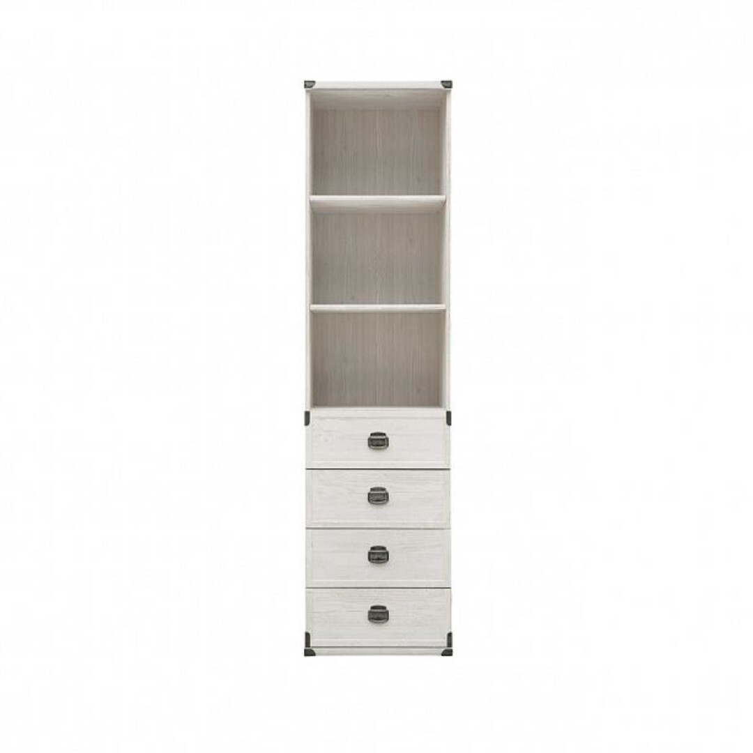 Regál JREG4SO/50ze systému INDIANA - horní otevřená část s policemi ve spodní části čtyři šuplíky na válečkových kolejničkách