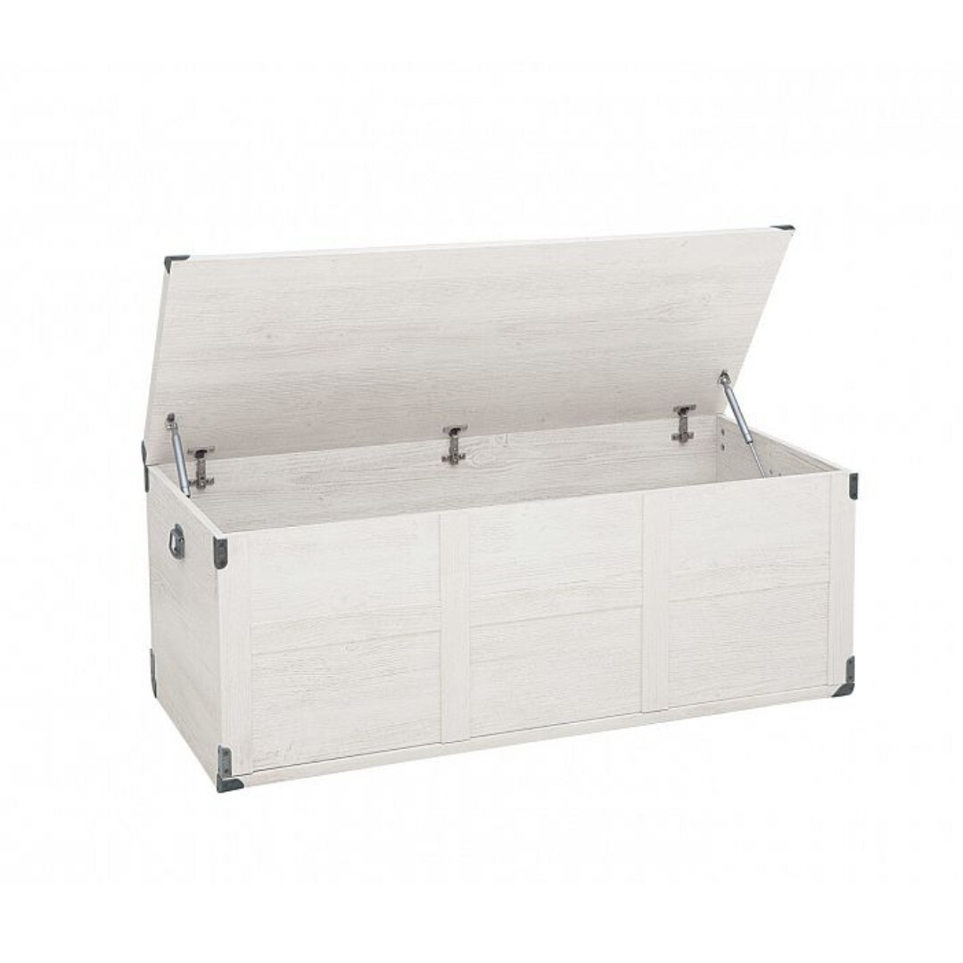 Truhla JKUF 120 ze systému INDIANA - s otevíráním víka směrem nahoru pomocí plynových pístů, je vhodná k ukládání hraček, dek i ložního prádla a pokud máte rádi netradiční řešení, může truhlu použít i jako lavicí na sezení.