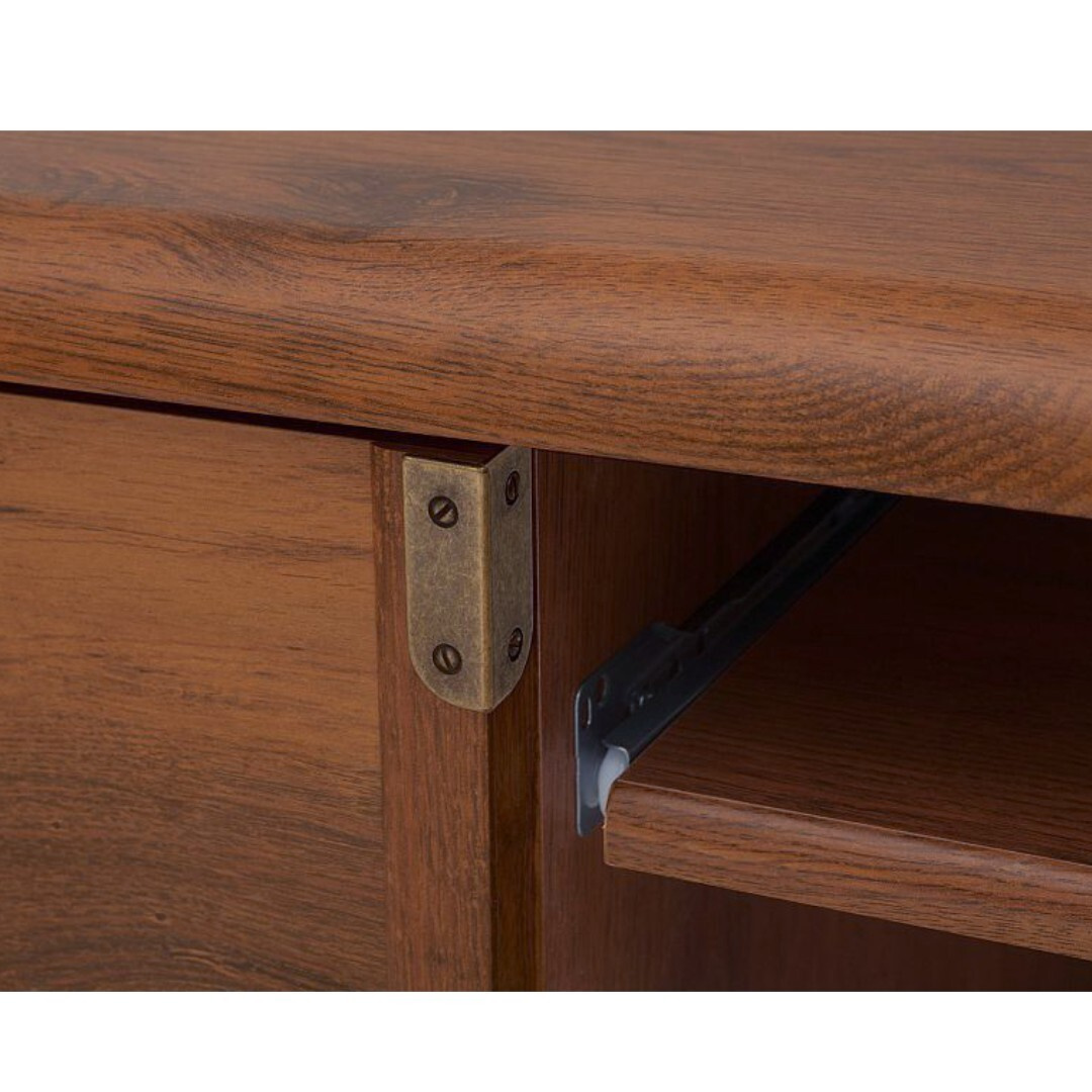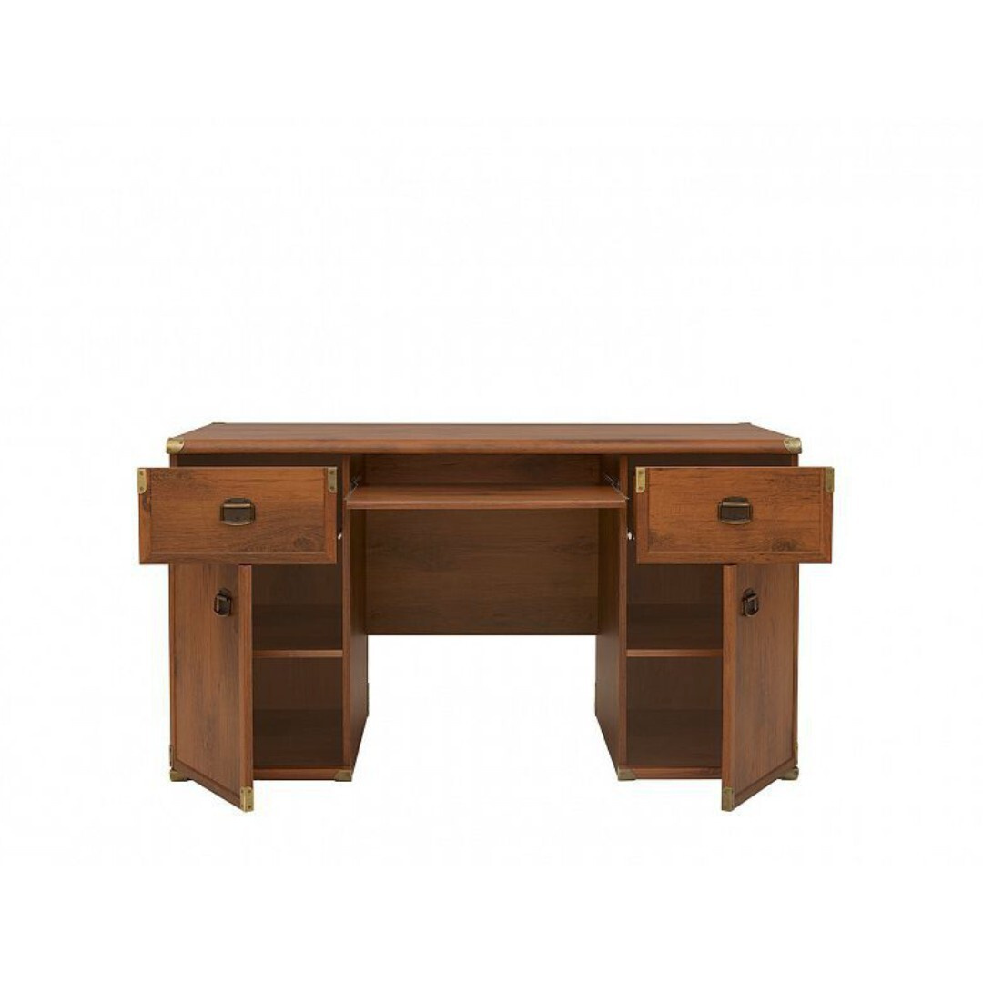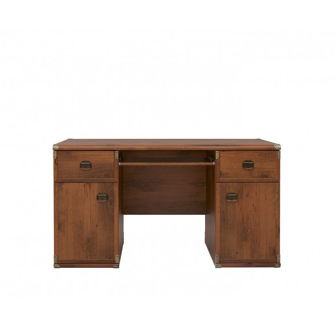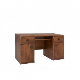 Psací stůl JBIU 2D2S/140 ze systému INDIANA - s dvěma šuplíky na válečkových kolejničkách ,po obou stranách stolu jsou skříňky s plnými dvířky a poličkou uvnitř.