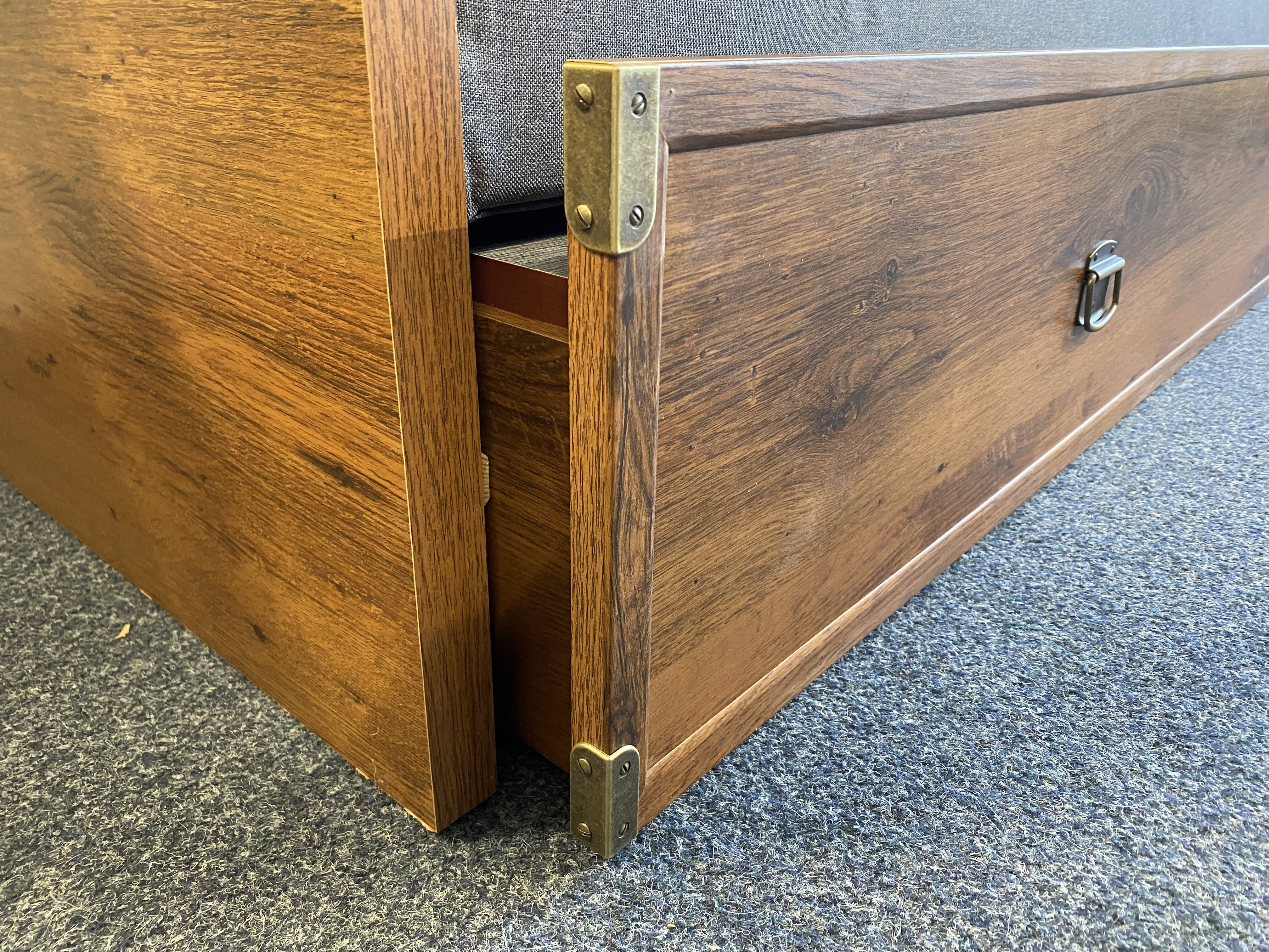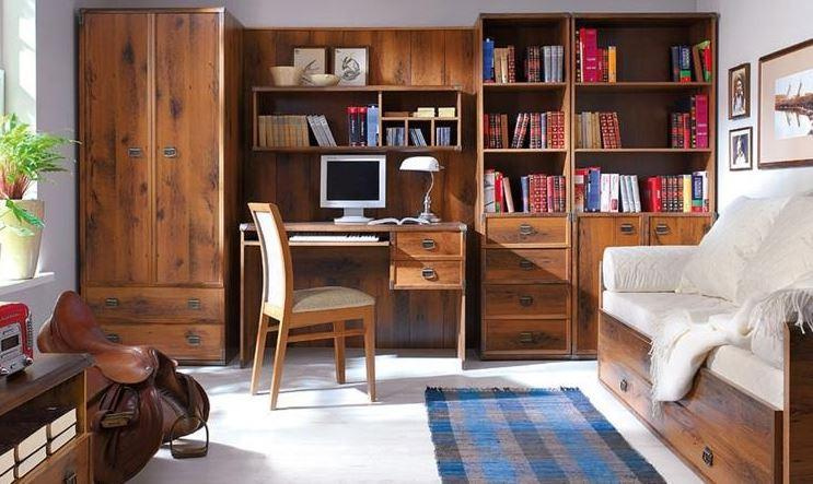 Systém INDIANA, nábytek v zajímavém barevném provedení dub sutter a sawana 17 s originálními kovovými detaily. Nábytek INDIANA je vyroben z kvalitního foliovaného lamina a MDF s kováním v rozích a kovovými úchyty. Tento sektor, evokující doby divokého západu, můžete využít k zařízení obýváku, předsíně, studentského pokoje nebo pracovny.