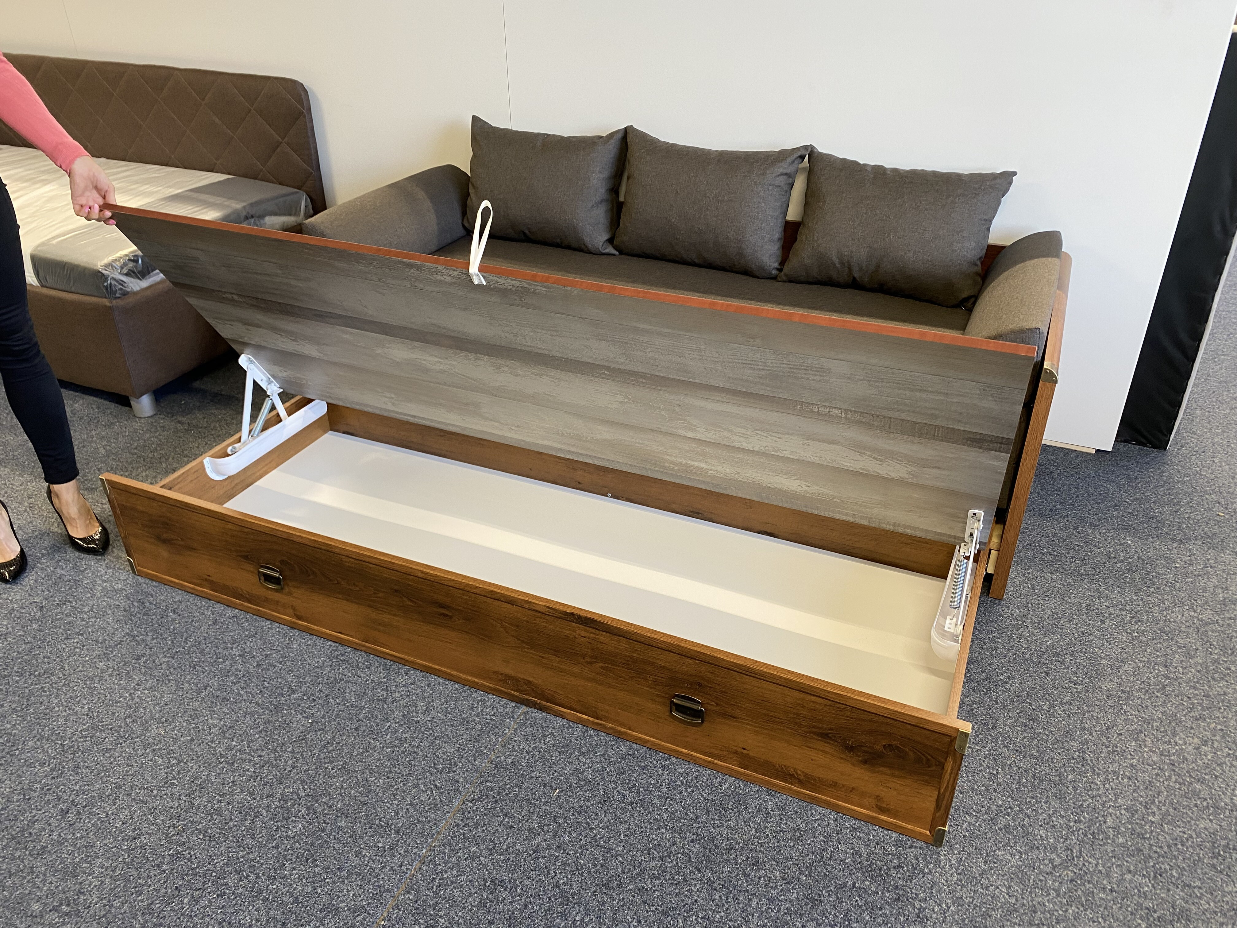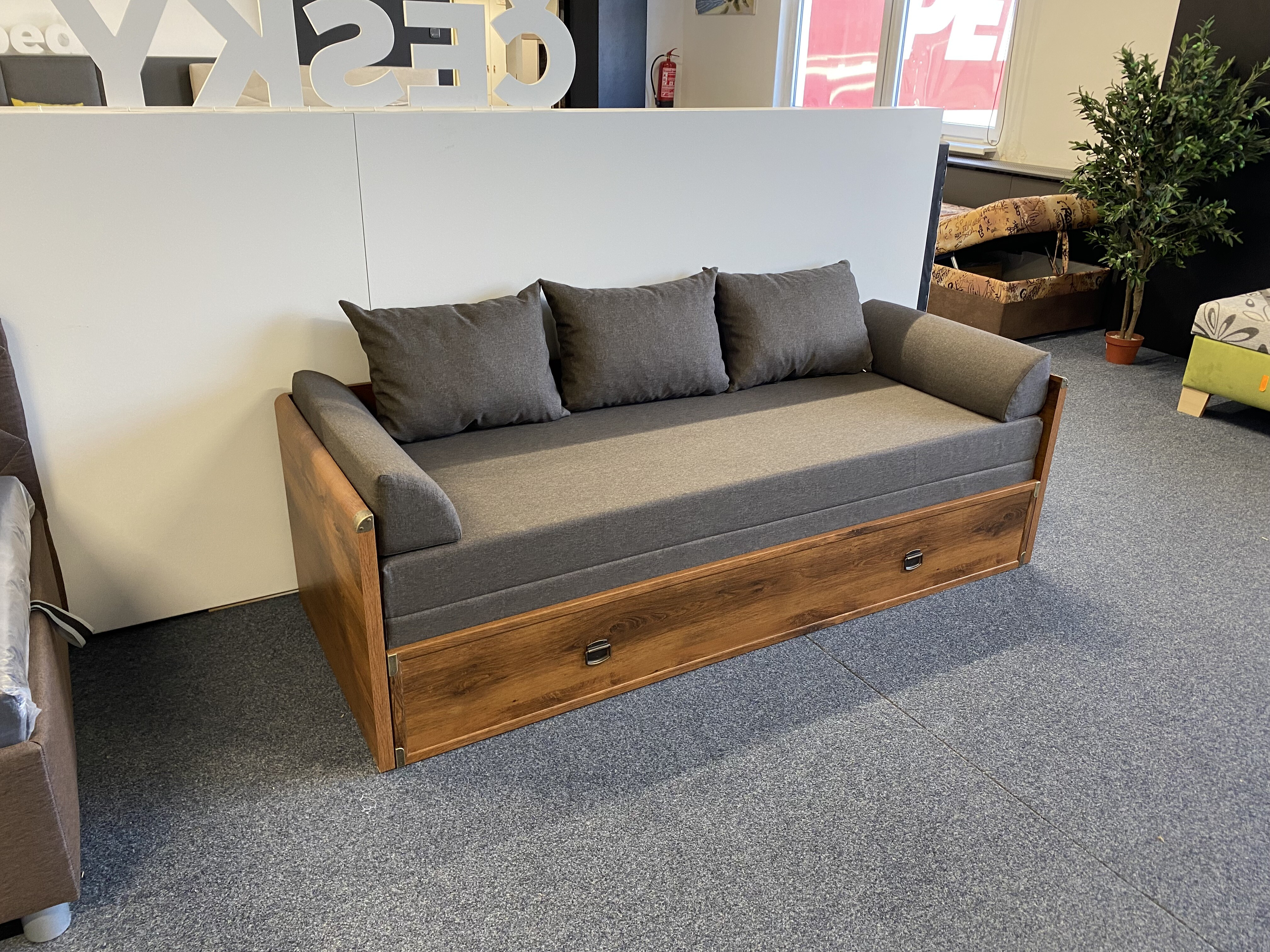 Rozměr: š. 79 cm / v. 60,5 cm / dl. 202,5 cm, lehací plocha - 75 ( po rozložení 150 x 195 cm ) x 195 cm
