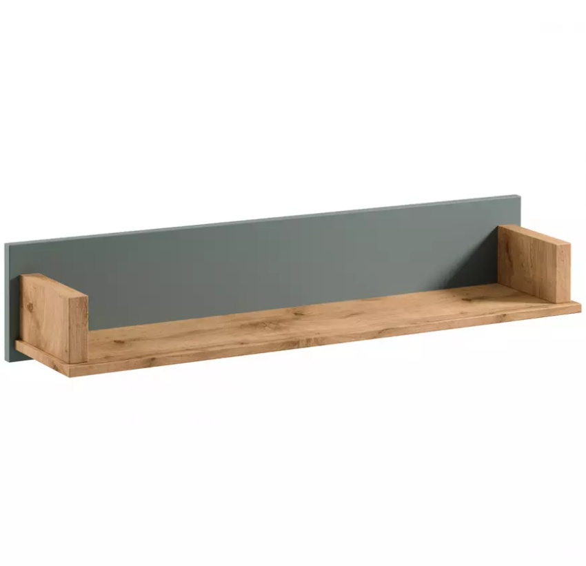 Moderní systémový nábytek INDYGO, vhodný do obývacího pokoje, ložnice i studentského pokoje. Nábytek je vyroben z kvalitního lamina. Korpus v teplém zlatém odstínu dub wotan, hladké čelní plochy dvířek a šuplíků jsou v jednobarevné zelené nebo béžové barvě. Jednoduchá ozdobná lišta plynule přechází do vysokých nožiček nábytku. Minimalistická kovová úchytka skvěle doplní celkový design sektoru INDYGO.