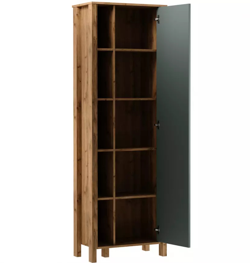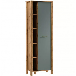 Regál R1D ze systému INDYGO - jednodvířkový, policový, částečně otevřený