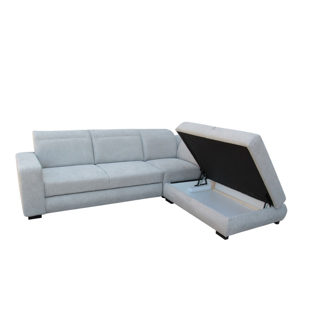 Barva této sedací soupravy je v šedém tónu látky Aragon 80 - s úpravou Water repelent - pro snadné čištění, vodoodpudivá. V ceně je také možnost rozkladu. Rozklad očalouněný v látce sedačky. Velikost spací plochy je o rozměrech 128x210 cm. Vhodné pro příležitostné přespání nečekané návštěvy. Dále v sedačce naleznete úložný prostor ideální pro uschování lůžkovin. Komfortu při sezení přispějí 5x polohovací záhlavníky zajišťující ideální polohu pro krk a hlavu. Výška sedačky je tak v závislosti na zvolené poloze záhlavníku 89-106 cm.