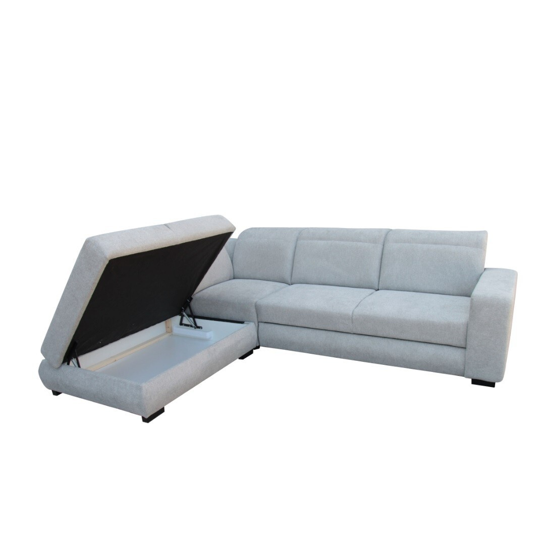 Barva této sedací soupravy je v šedém tónu látky Aragon 80 - s úpravou Water repelent - pro snadné čištění, vodoodpudivá. V ceně je také možnost rozkladu. Rozklad očalouněný v látce sedačky. Velikost spací plochy je o rozměrech 128x210 cm. Vhodné pro příležitostné přespání nečekané návštěvy. Dále v sedačce naleznete úložný prostor ideální pro uschování lůžkovin. Komfortu při sezení přispějí 5x polohovací záhlavníky zajišťující ideální polohu pro krk a hlavu. Výška sedačky je tak v závislosti na zvolené poloze záhlavníku 89-106 cm.