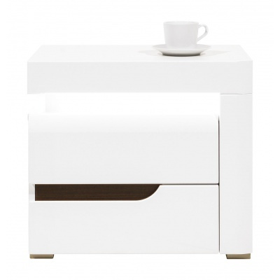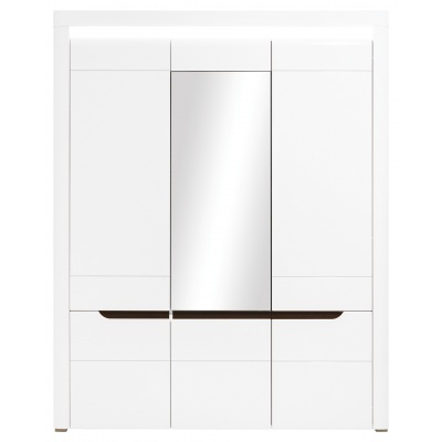 IRMA je moderní a elegantní nábytek s čelními plochami ve vysokém lesku, vnějším LED osvětlením, tiché dovírání dvířek. Korpusy nábytku jsou vyrobeny z kvalitního lamina v bílé barvě, čelní plochy skříněk a šuplíků jsou z foliované MDF bílé barvy s vysokým leskem. Z tohoto systémového nábytku můžete zařídit obývací pokoj, jídelnu i ložnici.