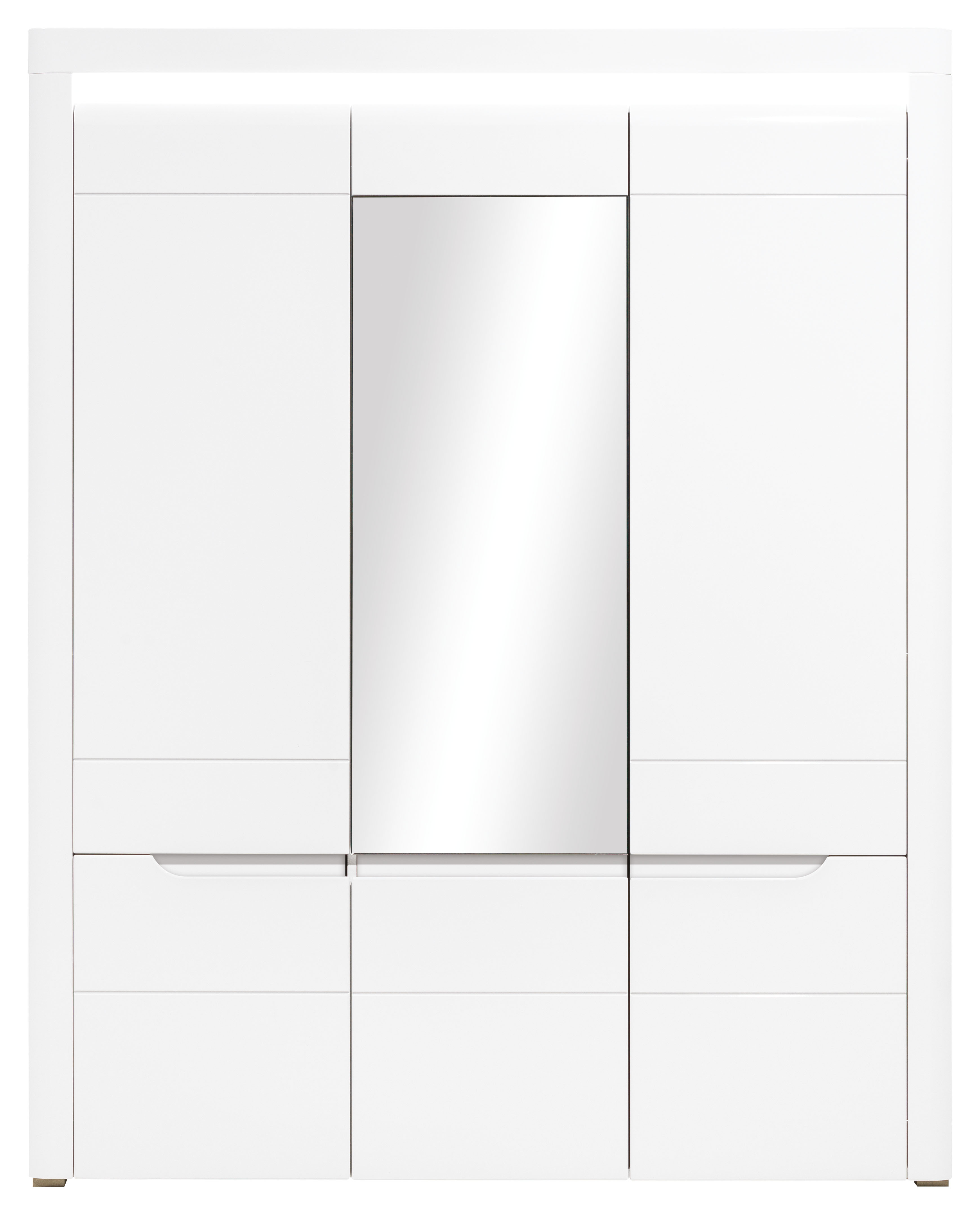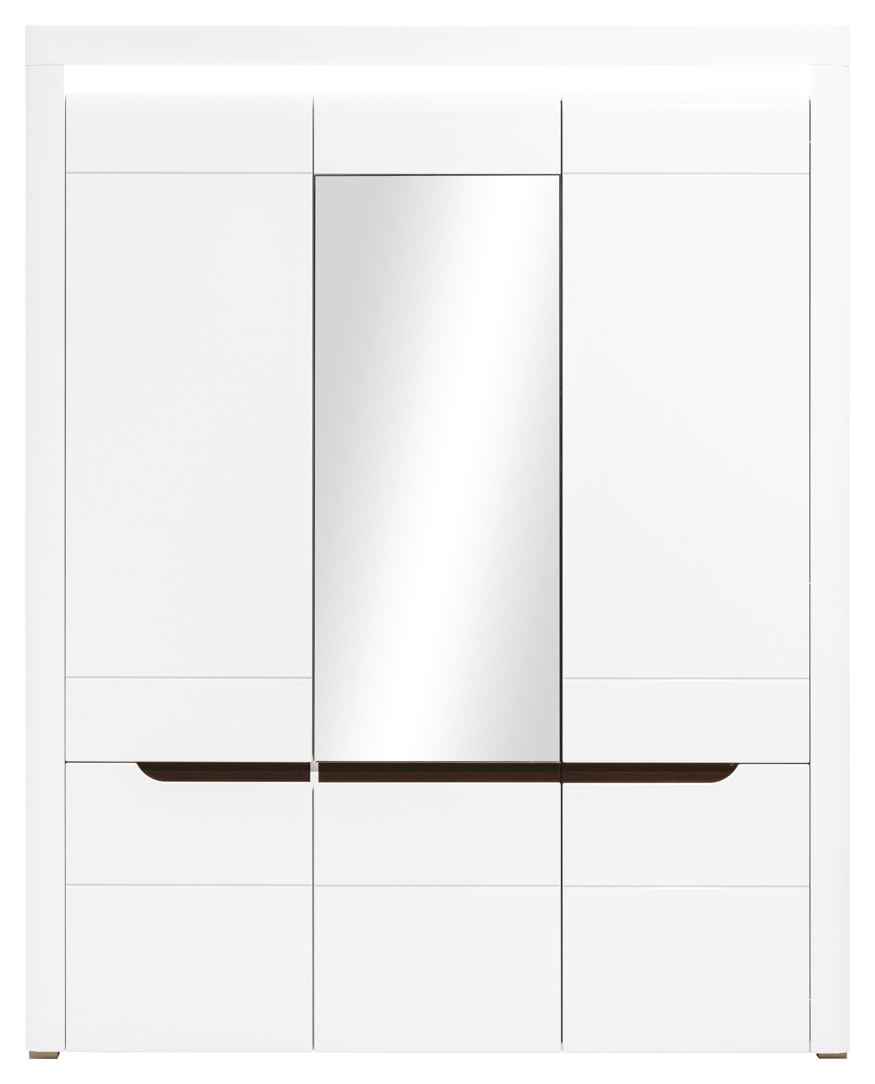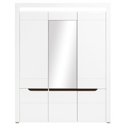 Šatní skříň - tří dveřová, kombinovaná s šatní tyčí a policemi, ( možnost dvou šatních tyčí nad sebou ), se zrcadlem