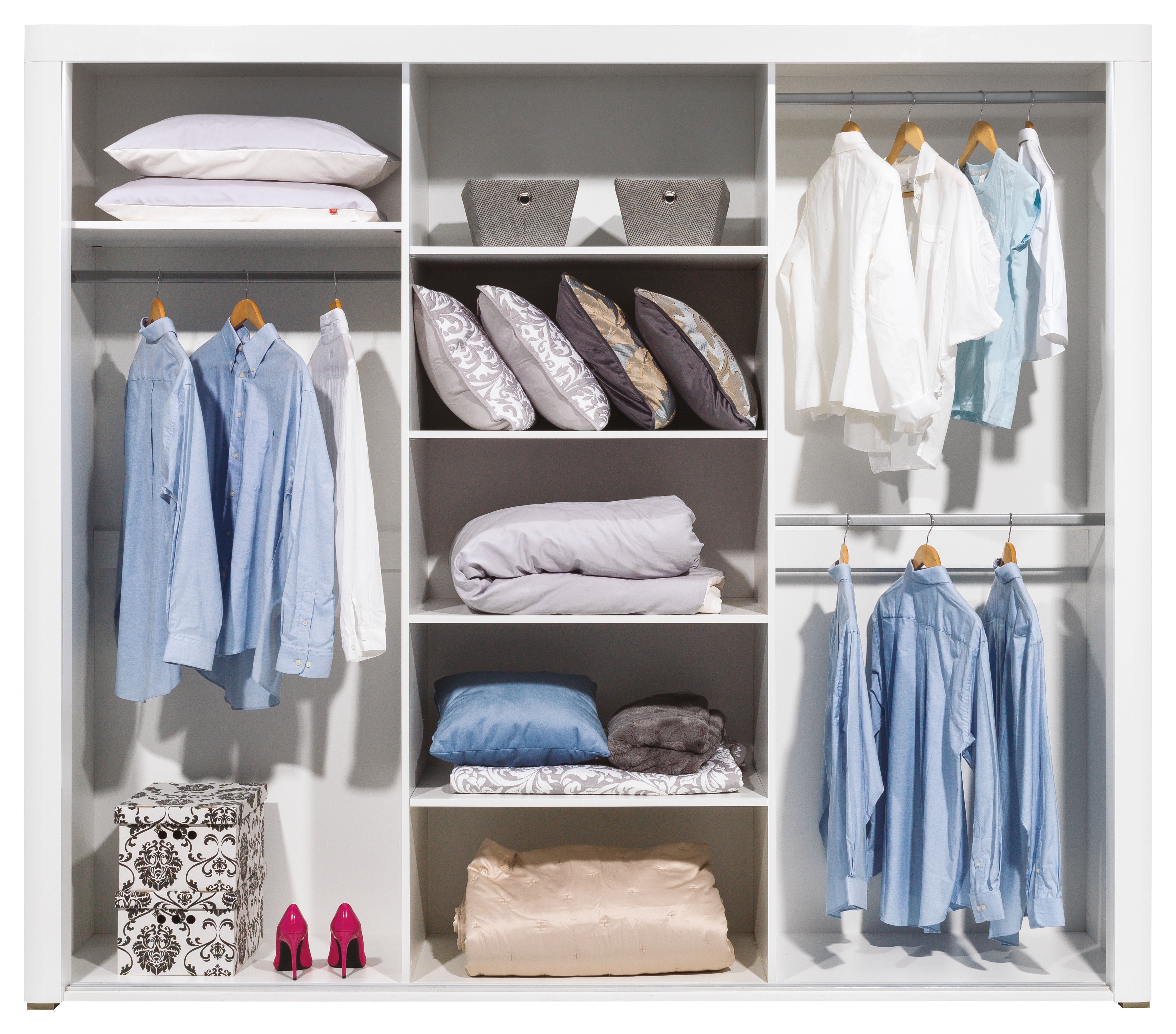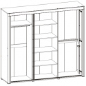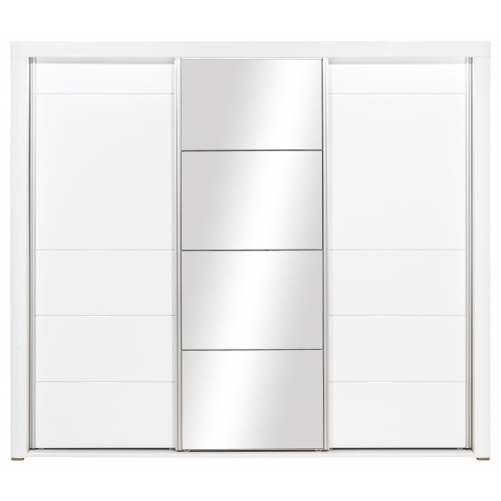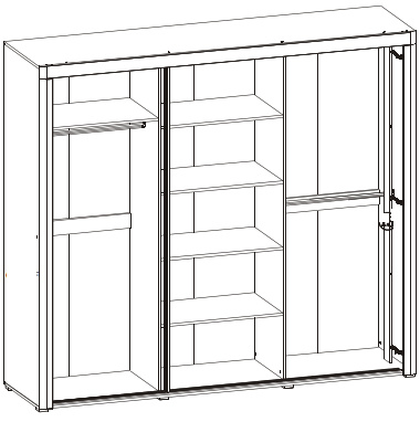 Šatní skříň - tří dveřová, kombinovaná s šatní tyčí a policemi, ( možnost dvou šatních tyčí nad sebou ), se zrcadlem a posuvnými dveřmi
