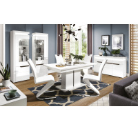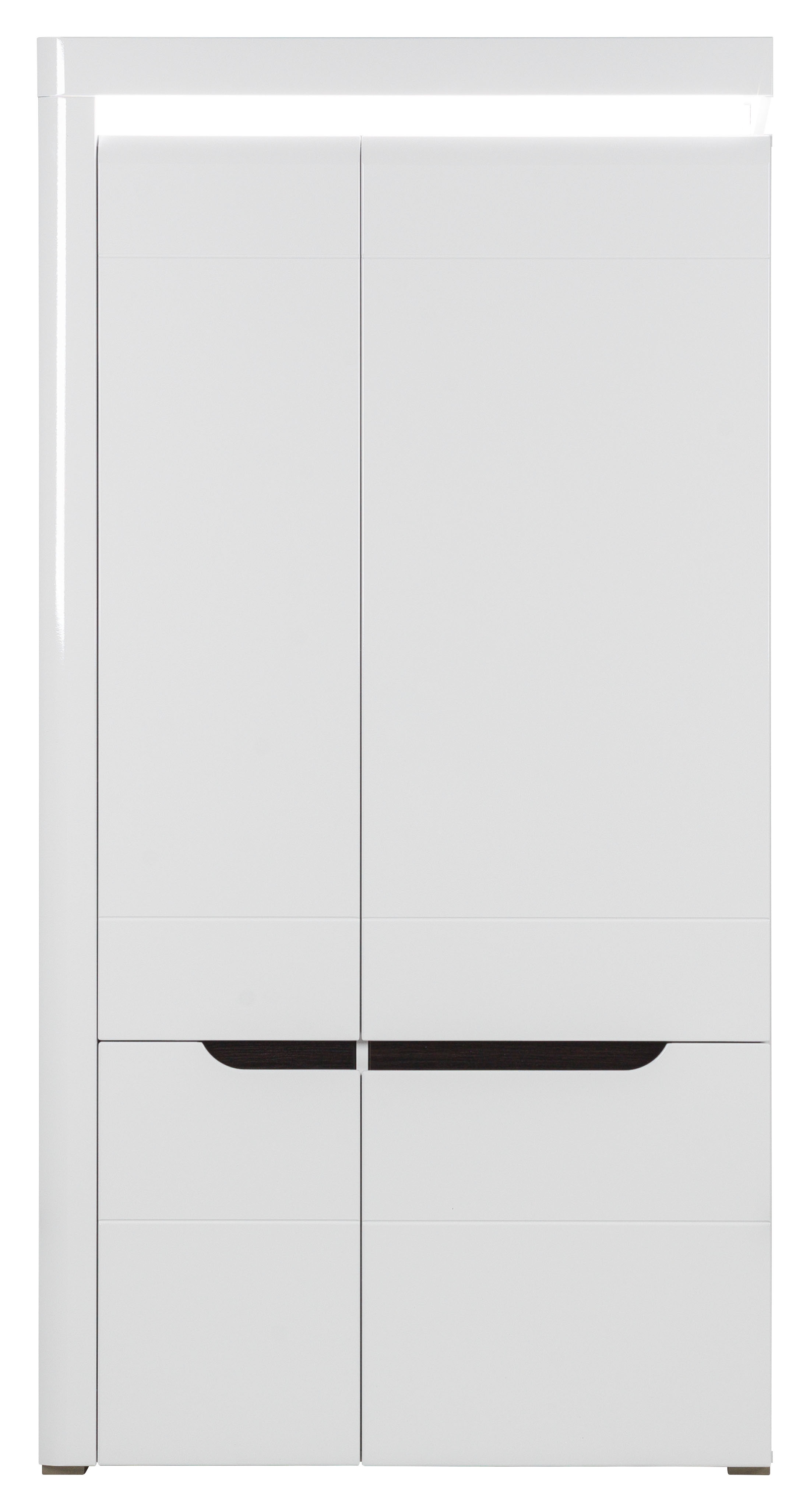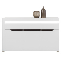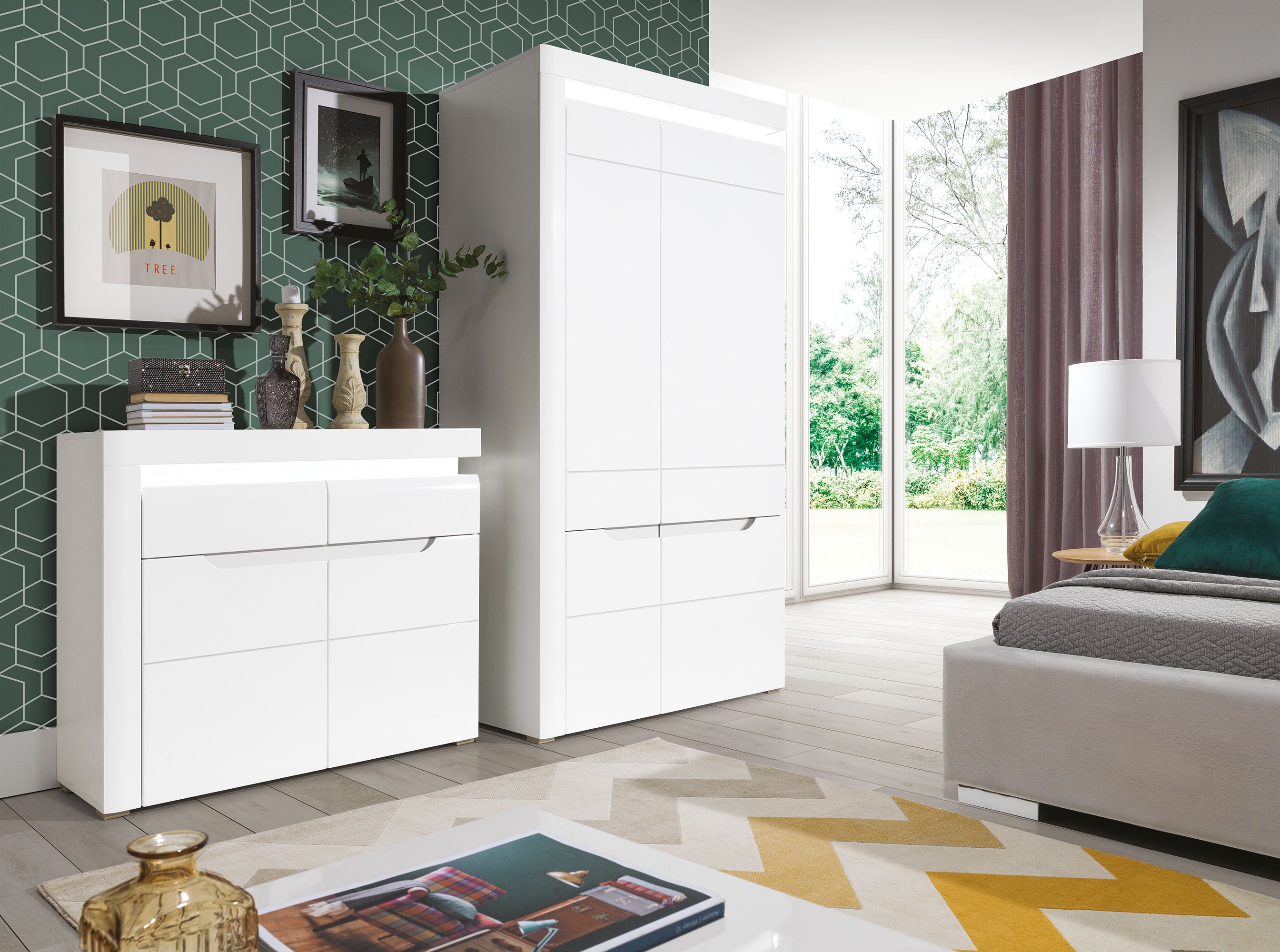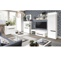 IRMA je moderní a elegantní nábytek s čelními plochami ve vysokém lesku, vnějším LED osvětlením, tiché dovírání dvířek. Korpusy nábytku jsou vyrobeny z kvalitního lamina v bílé barvě, čelní plochy skříněk a šuplíků jsou z foliované MDF bílé barvy s vysokým leskem. Z tohoto systémového nábytku můžete zařídit obývací pokoj, jídelnu i ložnici.