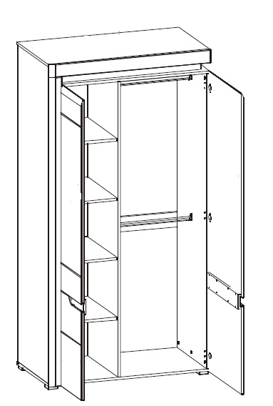 Šatní skříň - dvou dveřová, kombinovaná s šatní tyčí a policemi, ( možnost dvou šatních tyčí nad sebou )