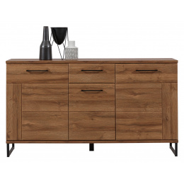 Atraktivní nábytkový systém IVO se vyrábí z kvalitního lamina v dezénu dub april. Dřevěný dekor v kombinaci s černými kovovými detaily působí masivním, ale elegantním dojmem. V nabídce máte 13 jednotlivých prvků, ze kterých můžete vytvořit obývací pokoj i jídelnu. Korpusy sektoru IVO mají sílu lamina 16 mm, vrchní desky 22 mm a hrany chrání ABS 0,5 mm a 1,5 mm. Dvířka, se systémem tichého dovírání a šuplíky s kuličkovými pojezdy s plným vysunutím, jsou z MDF o síle 18 mm potažené PVC folií. Nožičky a úchytky jsou kovové, čelní skla jsou tvrzená. LED podsvícení skleněných polic jsou součásti každé vitríny.
