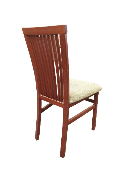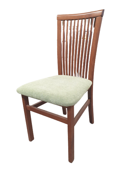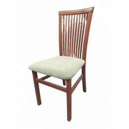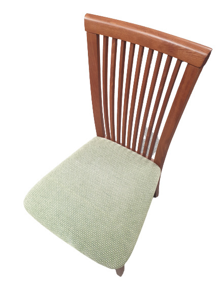 Elegantní dřevěná židle s čalouněným sedákem ve světle zelené látce.