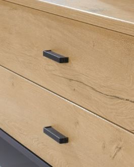 Extravagantní nábytkový systém vytváří originální prvky do moderního obývacího pokoje. Nábytek je na černých nožičkách, které jsou 12 cm vysoké. Moderní sektor JOHN II se vyrábí z kvalitního lamina o síle 16 mm odolného proti poškrábání, vlhkosti a vysokým teplotám, ohraněné PVC dýhou. Úchytky jsou z plastu. Nábytek nabízíme v dekoru dub lefkas. Tento nábytkový systém se skládá z 10 dílů, které můžete libovolně kombinovat a vytvořit si tak obývací pokoj podle svých představ. Ve vitrínách jsou skleněné police, které je možno doplnit LED osvětlením. Skleněné výplně dvířek jsou z tvrzeného skla. Šuplíky mají kuličkové pojezdy.