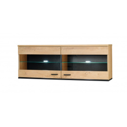 Závěsná vitrína 9 ze systému JOHN - k zavěšení na zeď je dělená na dvě části a v každé z nich je jedna skleněná police, ke které je možno dokoupit LED osvětlení.