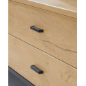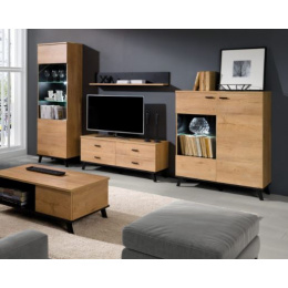 Extravagantní nábytkový systém vytváří originální prvky do moderního obývacího pokoje. Nábytek je na černých nožičkách, které jsou 12 cm vysoké. Moderní sektor JOHN II se vyrábí z kvalitního lamina o síle 16 mm odolného proti poškrábání, vlhkosti a vysokým teplotám, ohraněné PVC dýhou. Úchytky jsou z plastu. Nábytek nabízíme v dekoru dub lefkas. Tento nábytkový systém se skládá z 10 dílů, které můžete libovolně kombinovat a vytvořit si tak obývací pokoj podle svých představ. Ve vitrínách jsou skleněné police, které je možno doplnit LED osvětlením. Skleněné výplně dvířek jsou z tvrzeného skla. Šuplíky mají kuličkové pojezdy.