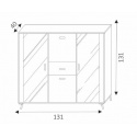 Vitrína 3 ze systému JOHN - dvoudveřová vitrína má po stranách prosklené dvířka a v každé části 3 prosklené police, ke kterým je možno dokoupit LED osvětlení. Uprostřed v horní části je umístěný bar a pod ním šuplík. V dolní středové části jsou plná dvířka.