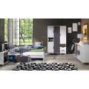 Systémový nábytek JOKER - ideální varianta pro Vašeho teenagera. Nábytek navržený v souladu s aktuálními trendy designu. Kombinace moderních barev a funkčnosti každého kusu nábytku poskytne pohodlí a ideální prostor pro učení. Studentský pokoj JOKER je v kombinací módních barev grafitu, šedé, bílé a dubu Lefkas což podtrhuje charakter nábytku. Sektorový nábytek JOKER tvoří 15 prvků, které můžete libovolně kombinovat. Díky čemu si můžete sestavit pokoj podle svých představ. Nábytek JOKER je vyroben z kvalitního lamina, hrany jsou začištěny ABS hranou, pojezdy jsou kovové, nožičky z plastu v dekoru dřeva a úchyty plastové v šedé barvě.