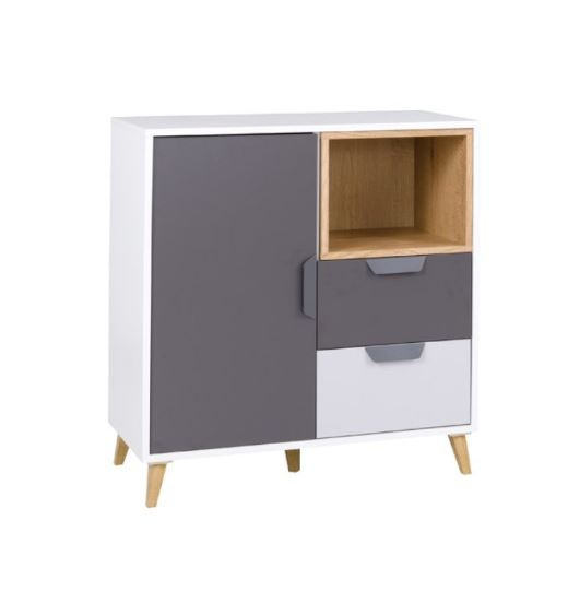 Komoda 9 ze systému JOKER - kombinovaná komoda s šuplíky a skříňkou s policemi.