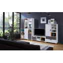 Sektorový nábytek JOKER je v barevném provedení: bílá / šedá / grafit a originální vkládaný dekorativní prvek je v dekoru dub lefkas