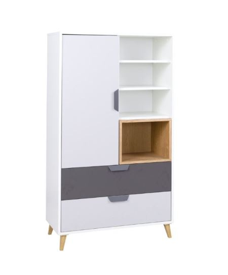 Systémový nábytek JOKER - ideální varianta pro Vašeho teenagera. Nábytek navržený v souladu s aktuálními trendy designu. Kombinace moderních barev a funkčnosti každého kusu nábytku poskytne pohodlí a ideální prostor pro učení. Studentský pokoj JOKER je v kombinací módních barev grafitu, šedé, bílé a dubu Lefkas což podtrhuje charakter nábytku. Sektorový nábytek JOKER tvoří 15 prvků, které můžete libovolně kombinovat. Díky čemu si můžete sestavit pokoj podle svých představ. Nábytek JOKER je vyroben z kvalitního lamina, hrany jsou začištěny ABS hranou, pojezdy jsou kovové, nožičky z plastu v dekoru dřeva a úchyty plastové v šedé barvě.