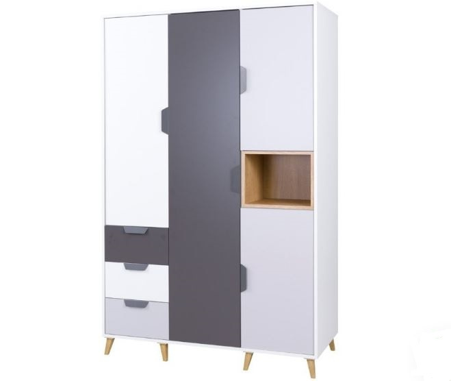 Systémový nábytek JOKER - ideální varianta pro Vašeho teenagera. Nábytek navržený v souladu s aktuálními trendy designu. Kombinace moderních barev a funkčnosti každého kusu nábytku poskytne pohodlí a ideální prostor pro učení. Studentský pokoj JOKER je v kombinací módních barev grafitu, šedé, bílé a dubu Lefkas což podtrhuje charakter nábytku. Sektorový nábytek JOKER tvoří 15 prvků, které můžete libovolně kombinovat. Díky čemu si můžete sestavit pokoj podle svých představ. Nábytek JOKER je vyroben z kvalitního lamina, hrany jsou začištěny ABS hranou, pojezdy jsou kovové, nožičky z plastu v dekoru dřeva a úchyty plastové v šedé barvě.