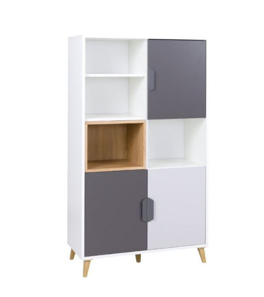 Sektorový nábytek JOKER je v barevném provedení: bílá / šedá / grafit a originální vkládaný dekorativní prvek je v dekoru dub lefkas