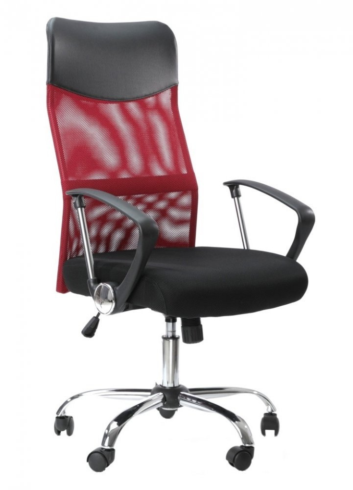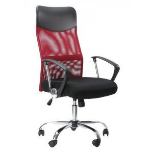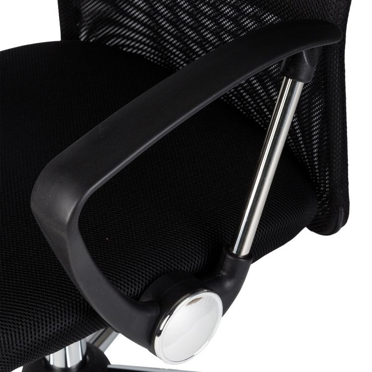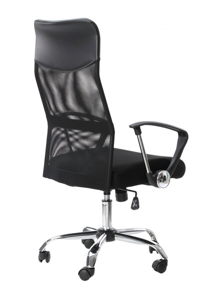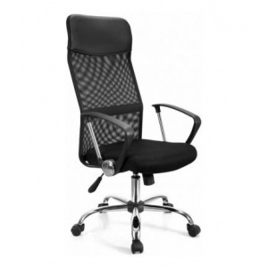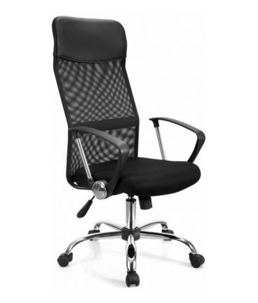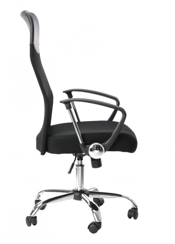 Kancelářské křeslo v provedení materiálu double mesh. Je postaveno na kovovém pětiramenným chromovaném kříži s plastovými kolečky, houpací mechanizmus s aretací v základní poloze a plynový píst umožňují výškové nastavení. Vysoké opěradlo z potahové černé síťoviny. Kancelářské křeslo najde své uplatnění v kanceláři nebo v domácí pracovně.
