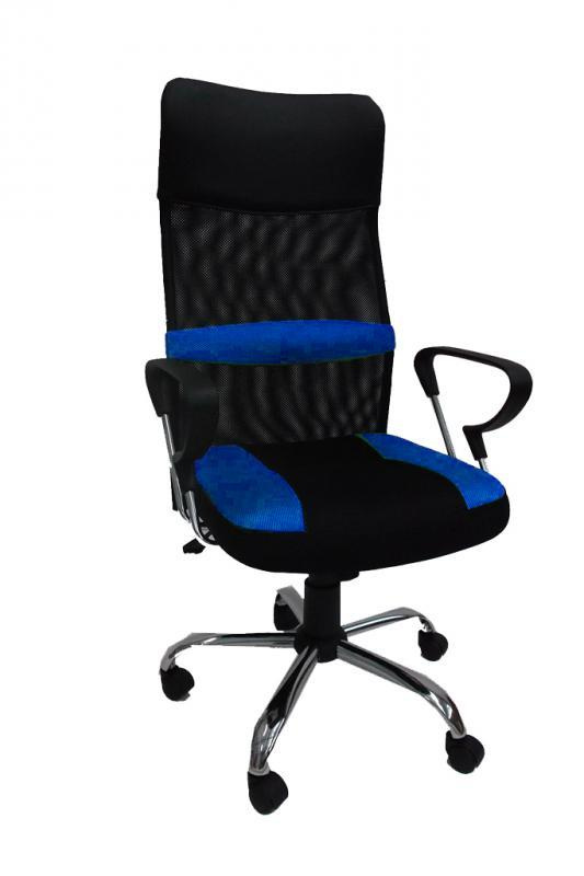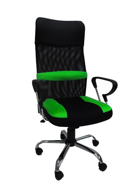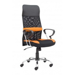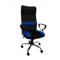 STEFANY kancelářské křeslo v provedení materiálu double mesh. Je postaveno na kovovém pětiramenným chromovaném kříži s plastovými kolečky, houpací mechanizmus s aretací v základní poloze a plynový píst umožňují výškové nastavení. Vysoké opěradlo z potahové černé síťoviny s nastavitelnou bederní opěrkou.