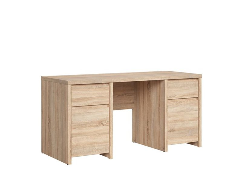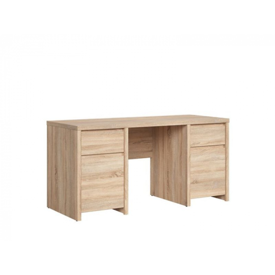 Psací stůl JBIU2D2S/160 - po stranách skříňky s plnými dvířky a s policí, nad nimi šuplíky s kovovými pojezdy, BEZ výsuvné police na klávesnici