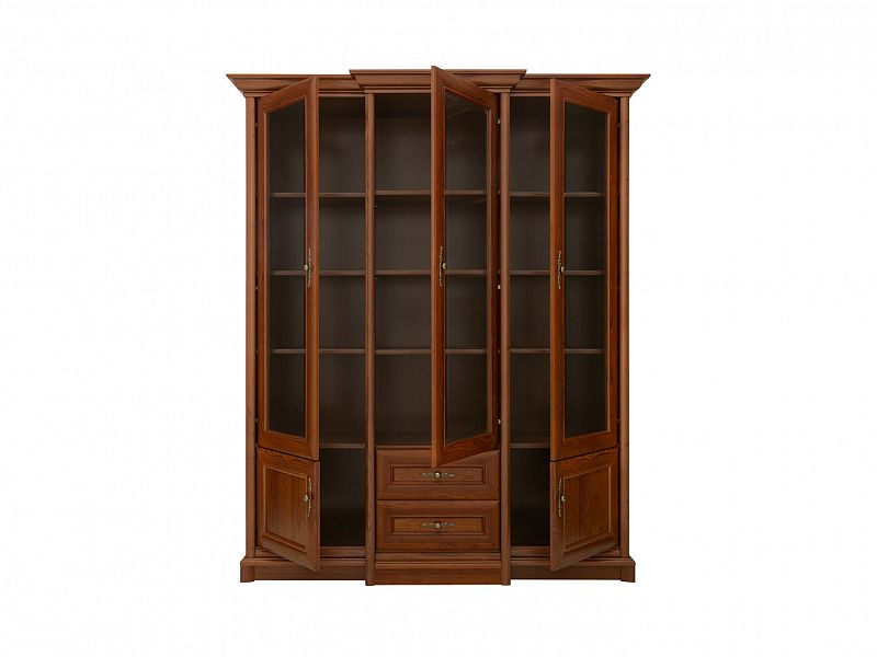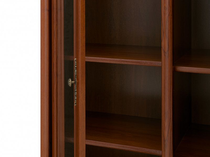Vitrína ze systému KENT - prosklená dvířka, vnitřní prostor je policemi rozdělen na 14 úložných částí, 2 zásuvky
