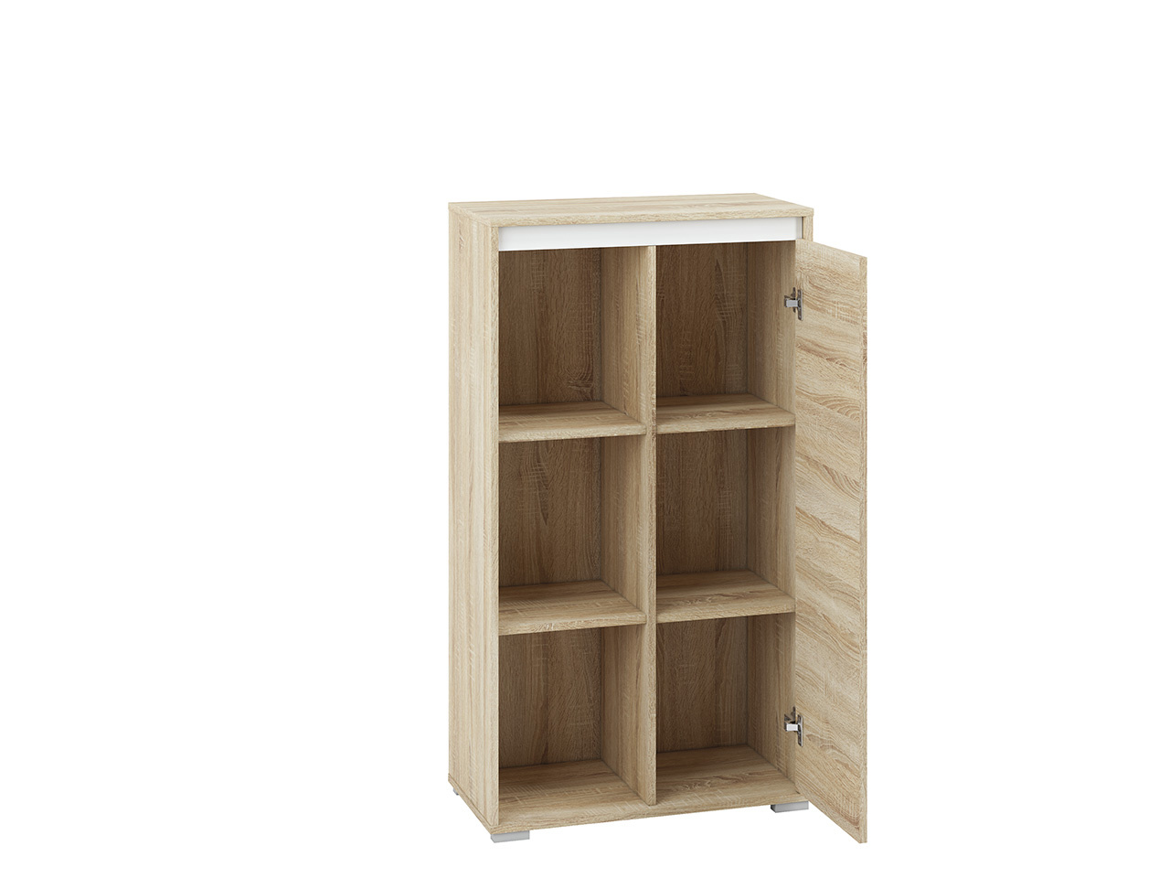 Komoda AVO 08 - vysoká policová komoda částečně uzavřená dvířky