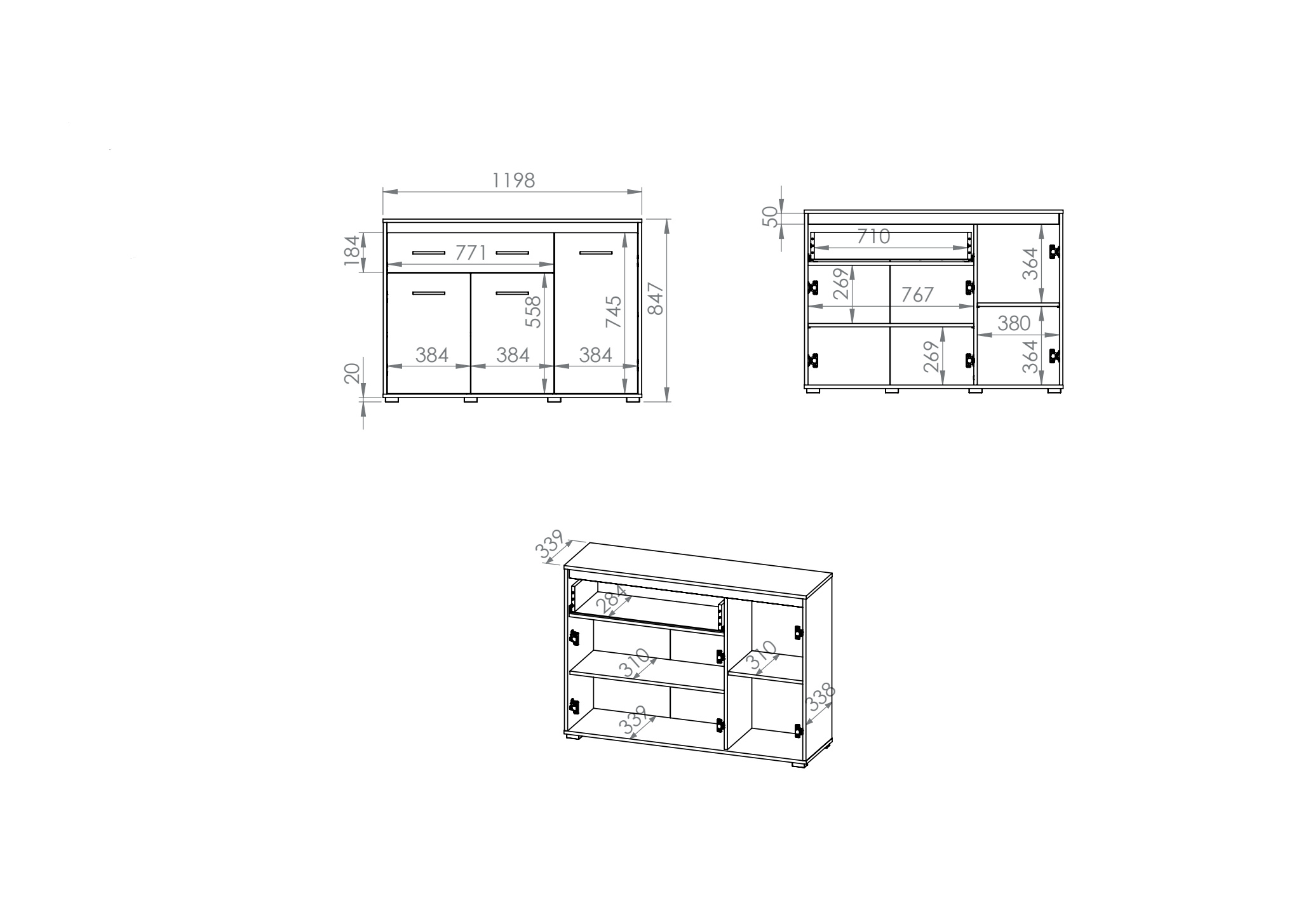 Rozměry: š. 120 cm / v. 85 cm / hl. 34 cm